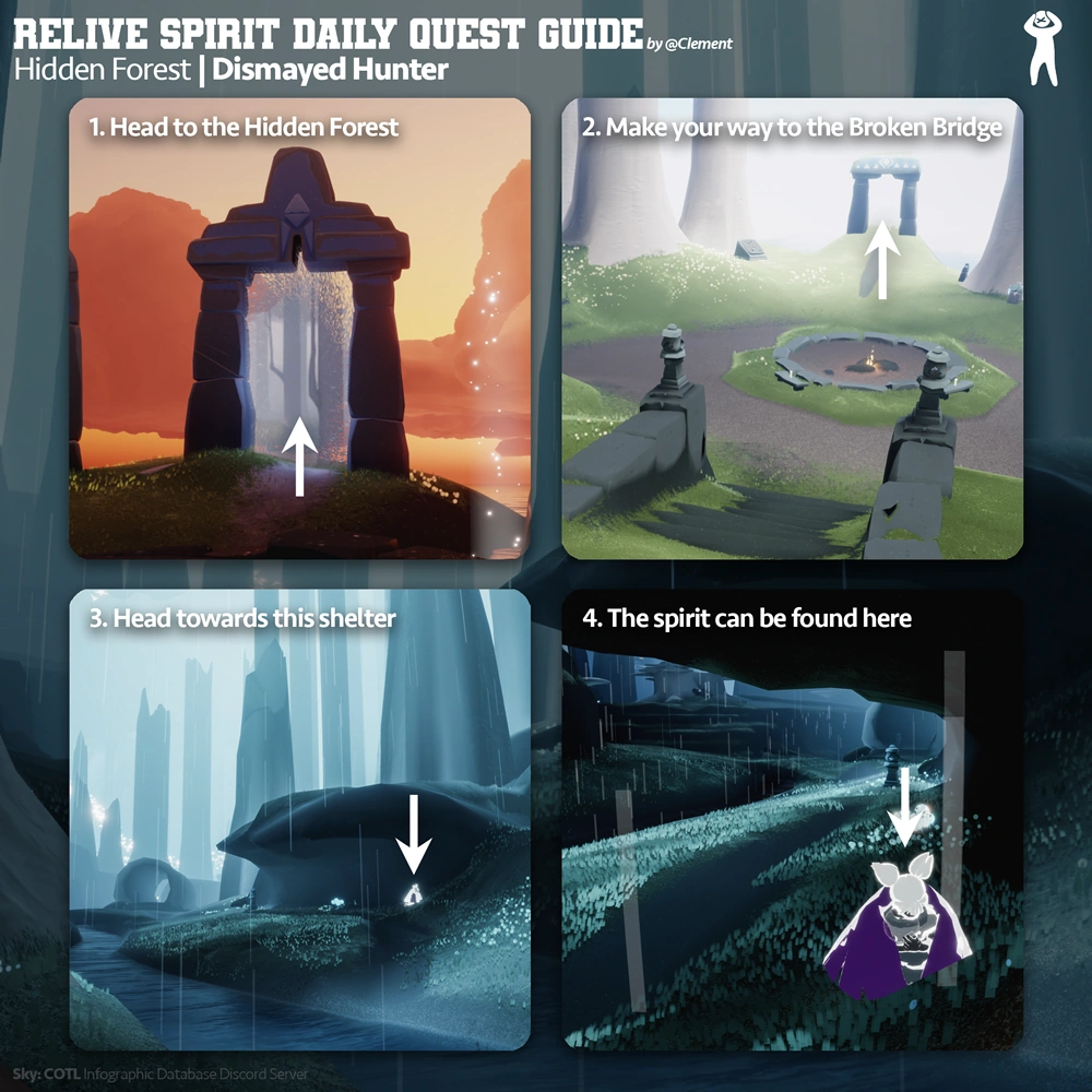 Ao reviver essa memória, você pode ver a Caçadora Desmaiada andando pelos túneis ocos das árvores com um arco na mão, aparentemente em uma tentativa de caçar. O Espírito então faz uma pausa para mirar em uma entidade invisível, mas acaba a perdendo de vista.